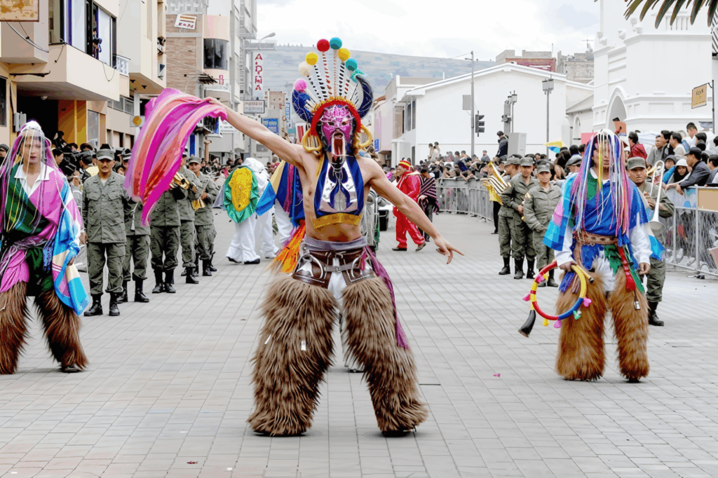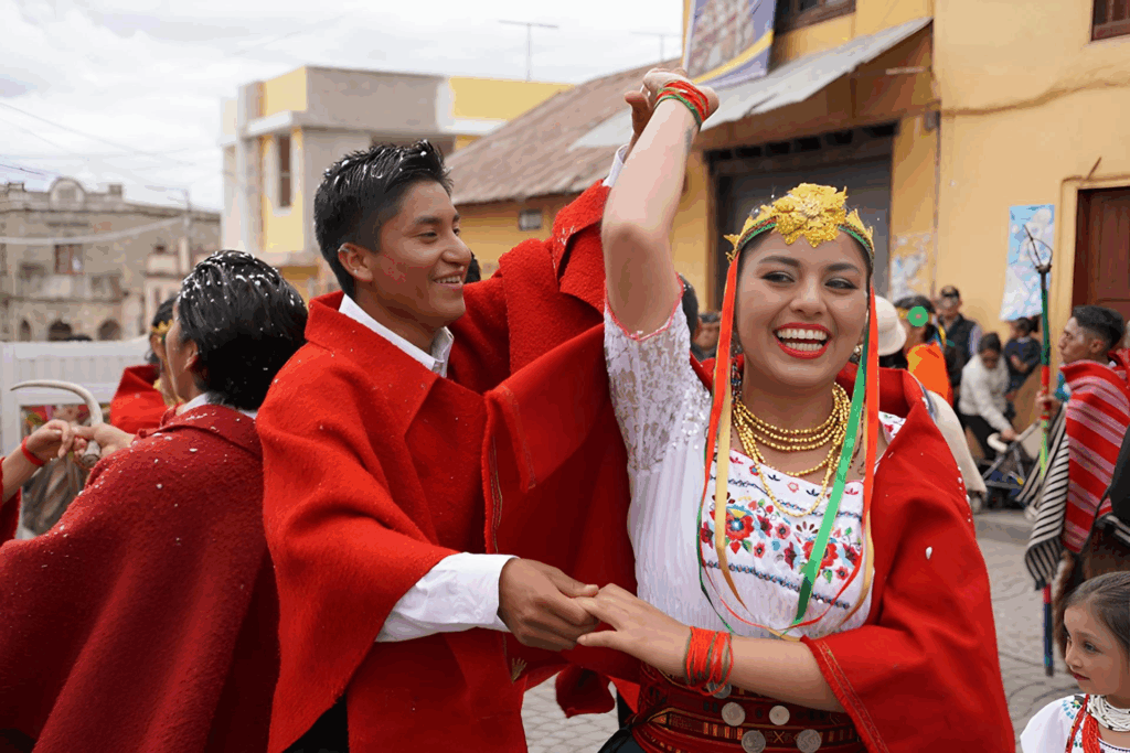 Los carnavales en Ecuador son una explosión de alegría, música y color, que se viven con intensidad en toda la zona interandina. Entre los más representativos se encuentran los de Guaranda y el de las Flores y las Frutas de Ambato, así como los carnavales cañaris, donde destaca el mítico personaje del “Tayta Carnaval”, símbolo de la fiesta y la tradición ancestral. En esta celebración, la población se entrega al juego con agua, espuma, talco y pinturas vegetales, creando un ambiente festivo único lleno de bailes, comparsas y máscaras. Pese a que antiguamente se establecieron prohibiciones y medidas estrictas para controlar los excesos, la euforia y la tradición se mantienen intactas, mostrando la riqueza cultural y la identidad de cada región.